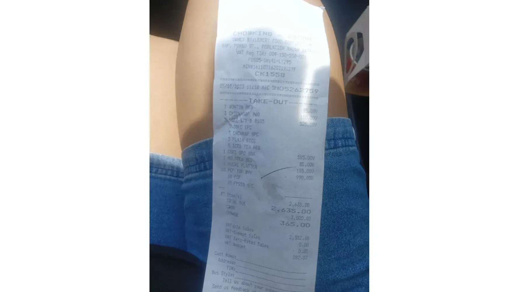 Inask ko ulit siya. Sabi ko na discount ba yung sa kapatid ko. Inulit ko ang order. Yung chicken lauriat and then tumango siya saying opo. Binigay niya lang sakin is yung confirmation receipt from cashless payment nyo.