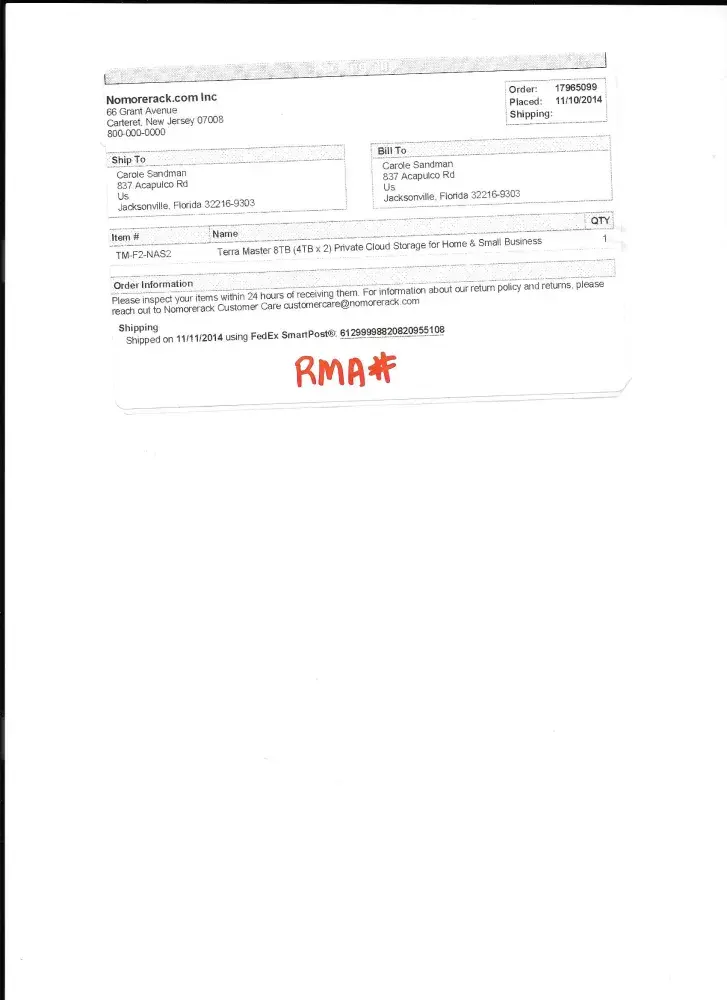 The item order as listed is: Order #[protected] TM-F2-NAS2 Terra Master 8TB (4TBx2) Private Cloud Storage for Home and Small Business They say buried in the description was a statement that drives are not included. This item description should not have included any mention of drive capacities since they were not selling any drives. They are charging me $10.35 for shipping the item back. I plan to never do business with them again.