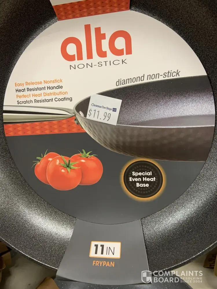 Purchased an Alta non-stick 11 inch frypan from Christmas Tree shops approximately 3-4 weeks ago. It states Heat resistant handle. While my husband was cooking breakfast on Sat. morning he went to take the pan off the stove and when he grabbed the handle near the top end his fingers stuck to the pan. This caused several fingers to be burned badly. They blistered within a day. I returned the pan and spoke to the manager of the store. I asked for a umber to speak with someone regarding this matter. He gave me [protected]. I was on hold waiting over an hour. When I finally spoke to someone they said I needed to call [protected]. I am still on hold 30 plus minutes later.