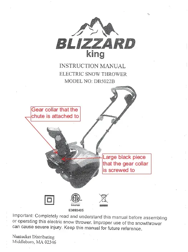 Electric snow-blower dubbed "Blizzard King" shakes violently after 2nd use. Pieces broke off on first use. Totally unsuitable for New England weather.