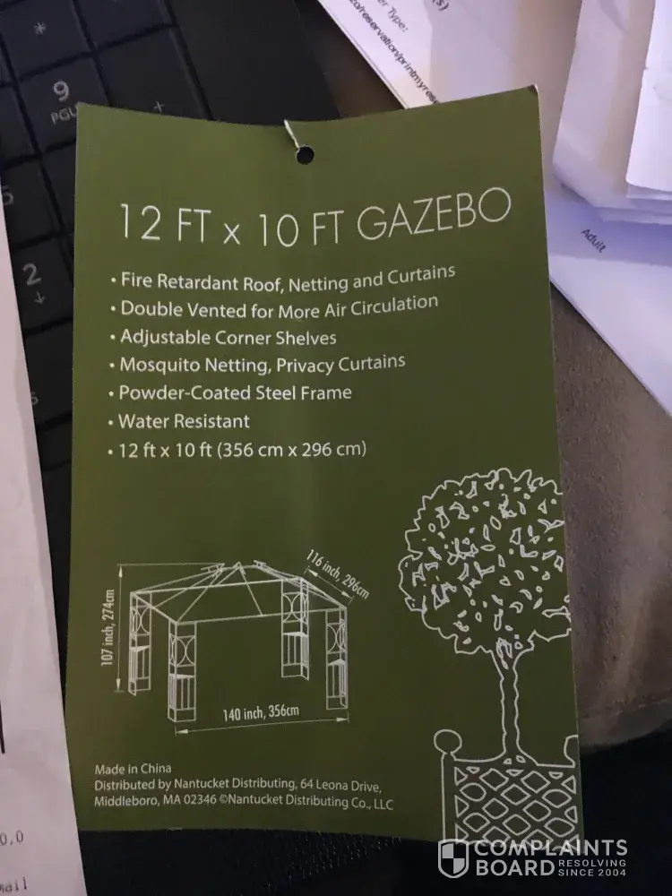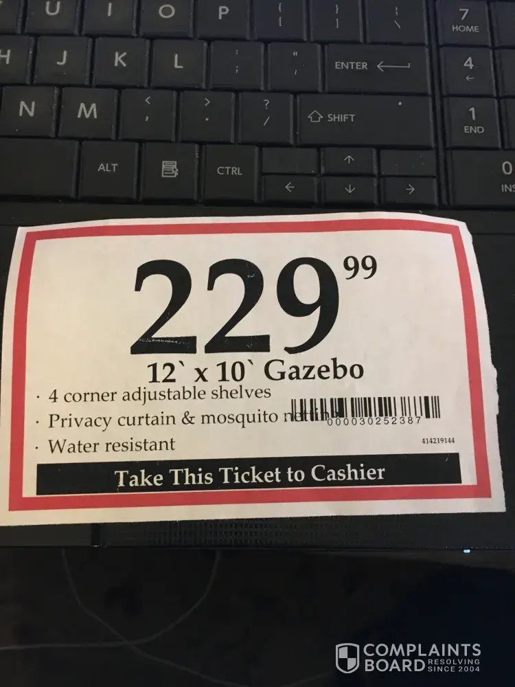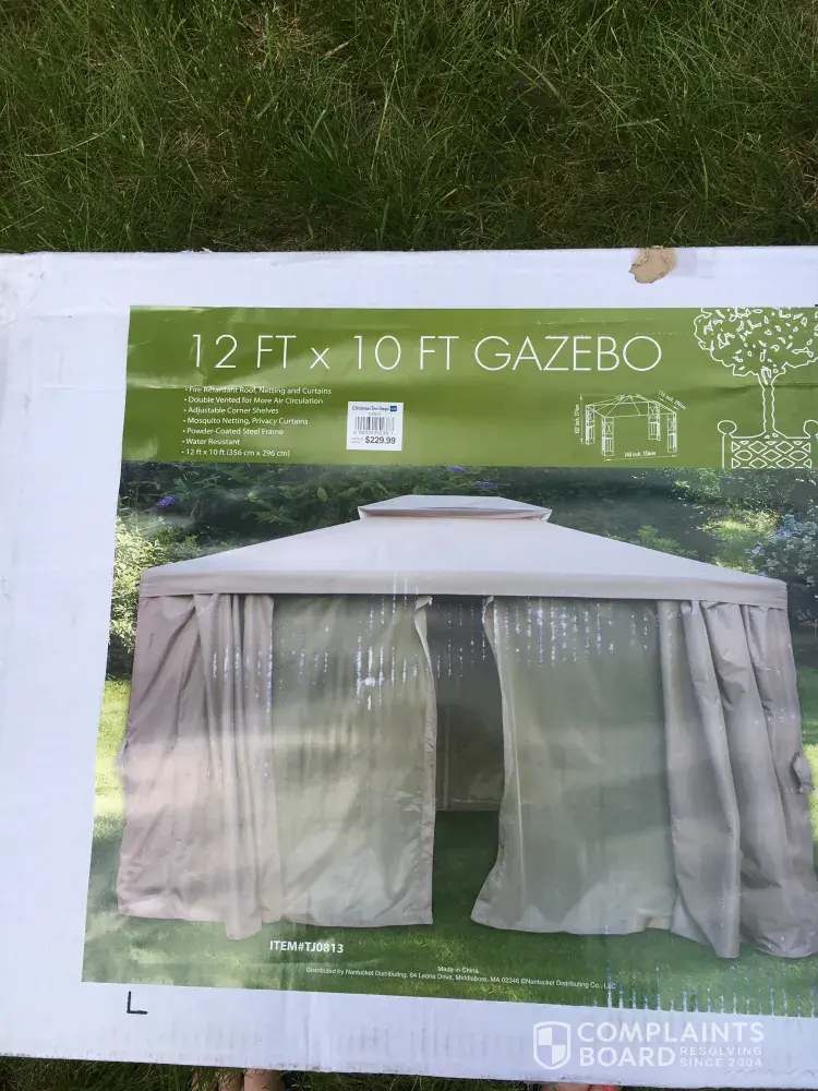 I bought a Gazebo from your Natick store on 5/17/2017. My husband and I assembled it this past weekend and on completion of the project discovered that one of the side shade panels has a defective zipper.