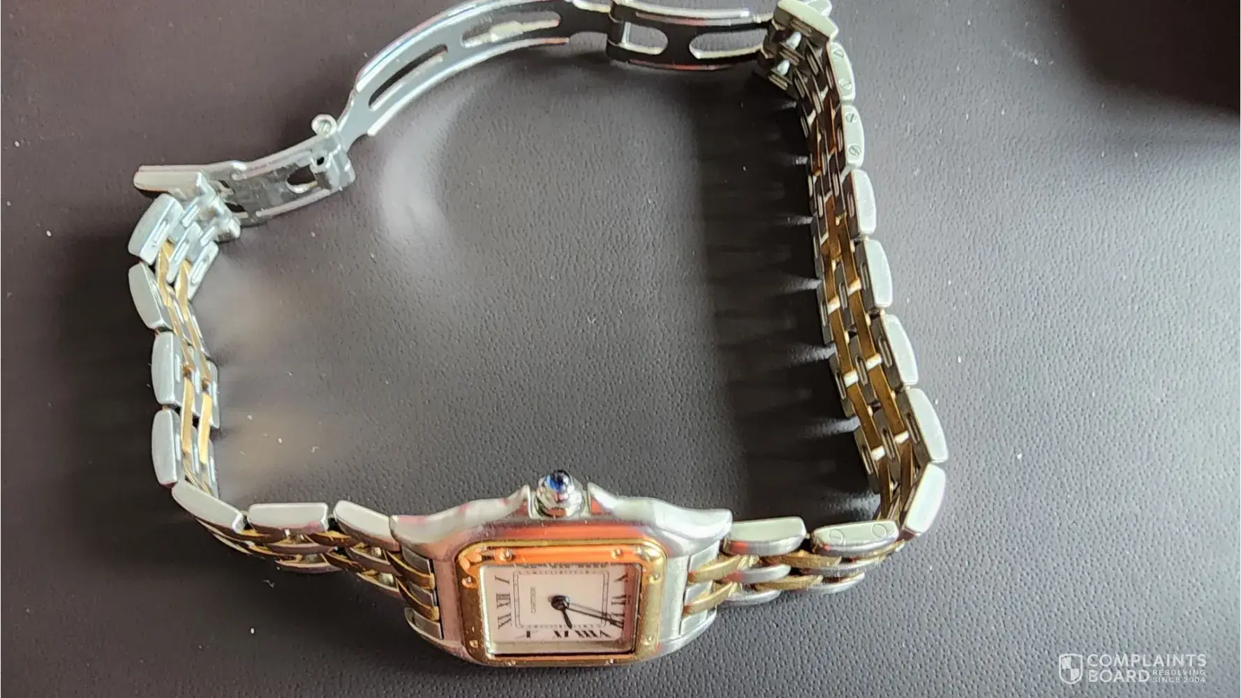 After a month we discovered that the bracelet was seriously worn (it snapped) and the watch was clearly not as described as being in excellent condition. Cartier told us the bracelet was 'on its last legs' and that 'the watch should not be worn for everyday use.'