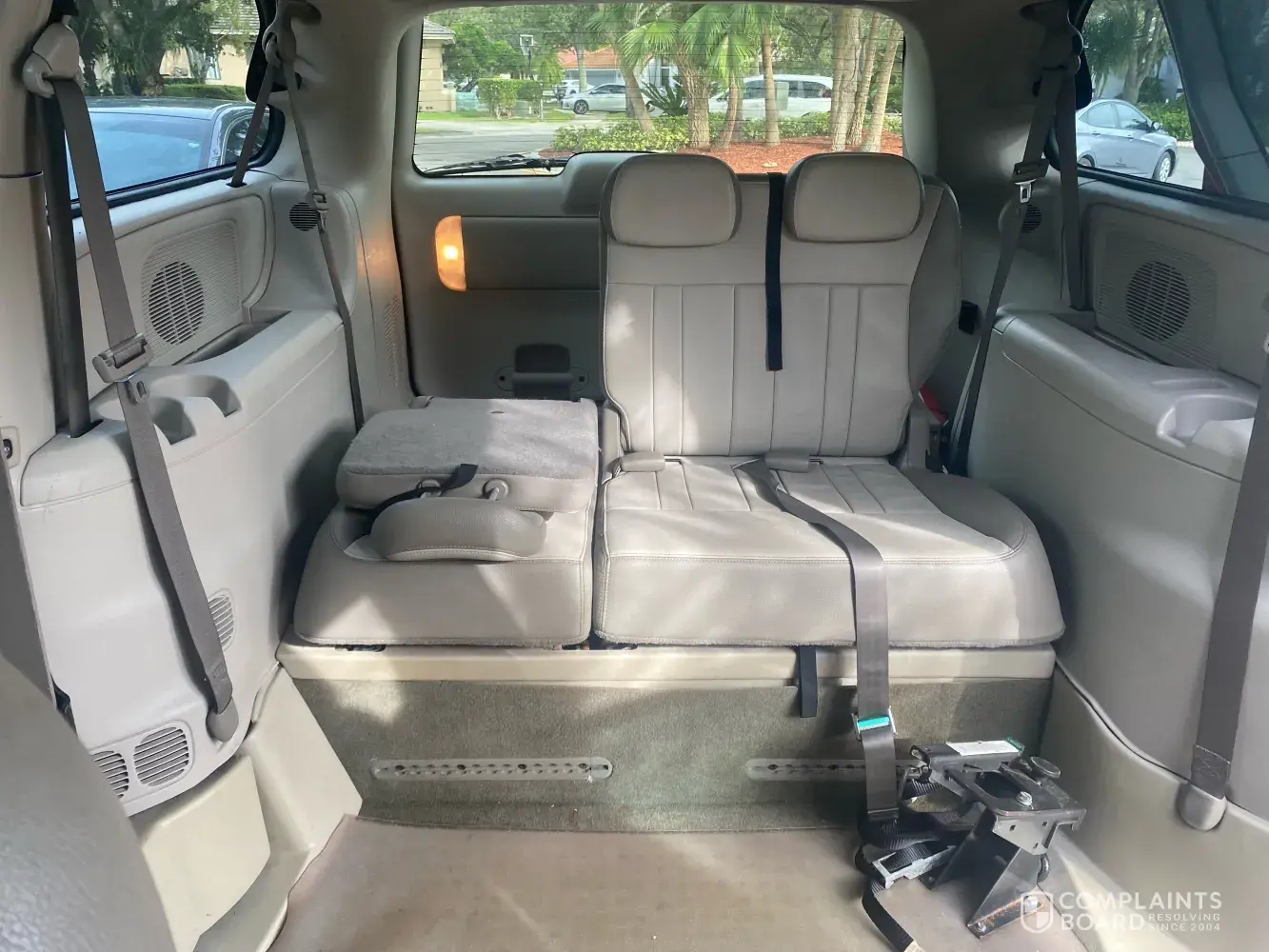 I took my Town and Country Wheelchair van in on Tuesday, December 21, Tuesday. I asked Frank, the service rep, to fix the sunroof leak, which I've taken there so many times before because it's a manufactures design flaw of this particular Chrysler Town & Country. The sunroof always leaks. In the past the service manager has blown out the tubing for free because they get clogged and then cause a leak inside the van. This is how they chose to address the issue with the defect. Unfortunately, it was raining so hard, and the water was going into the car, and I couldn't stop it, and it caused major damage to my interior.