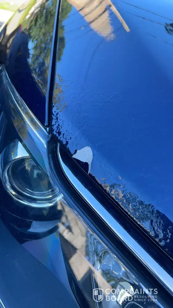 I have attached photos. I also noticed on various internet sites that this is a problem with the metal used in the hood and the paint attaching to it.