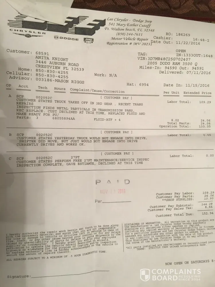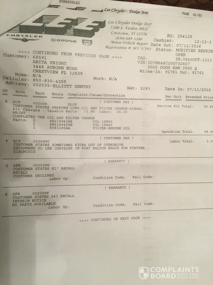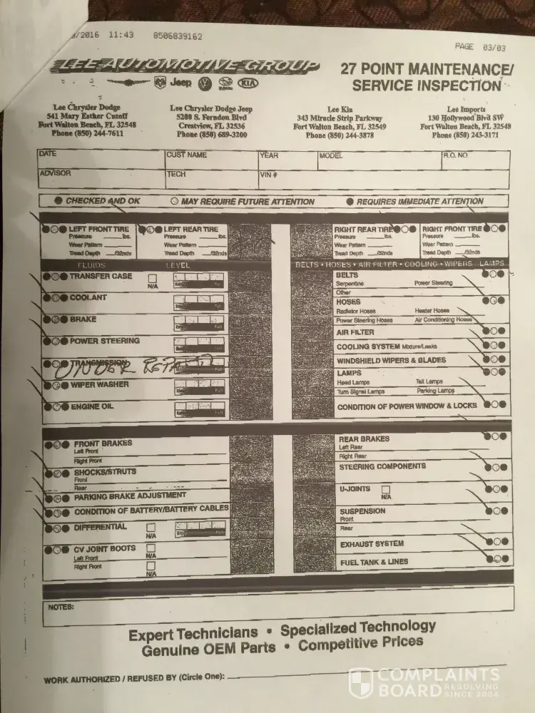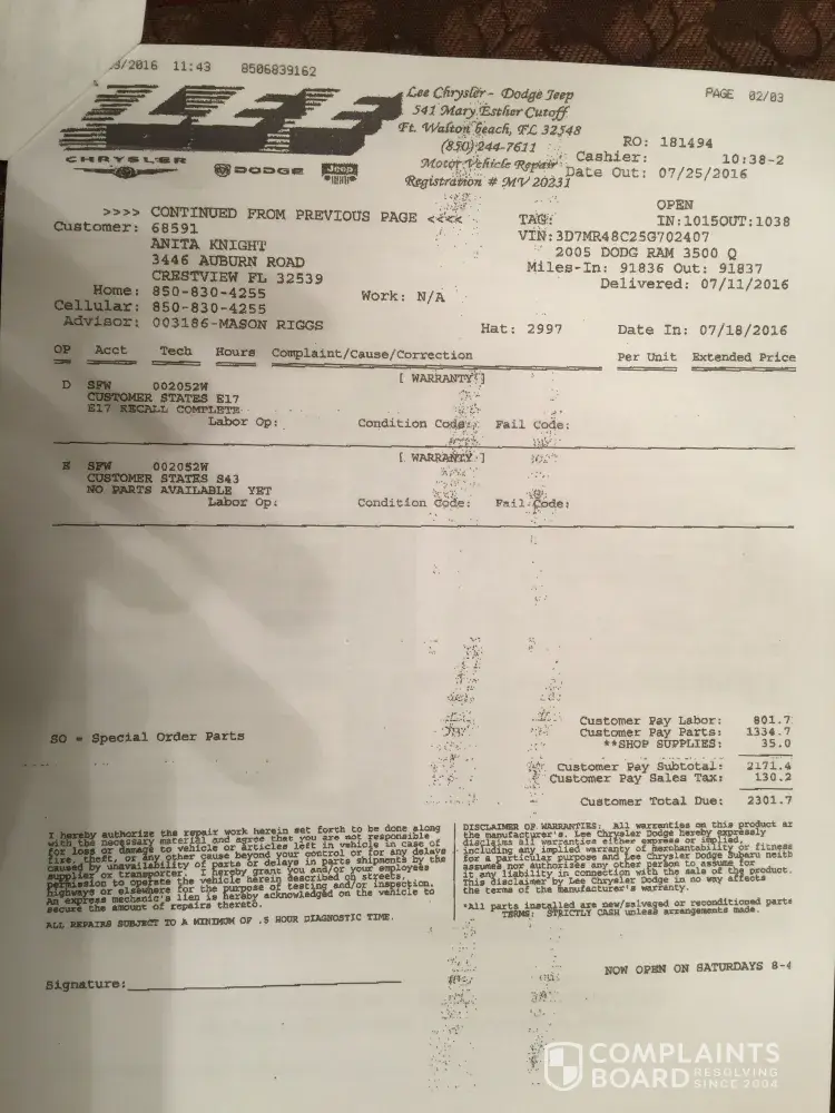 Lee Chrysler Dodge dealership in Fort Walton Beach, Fl is a complete SCAM. They sold me parts I did not need and never fixed the truck. 😡😡😡