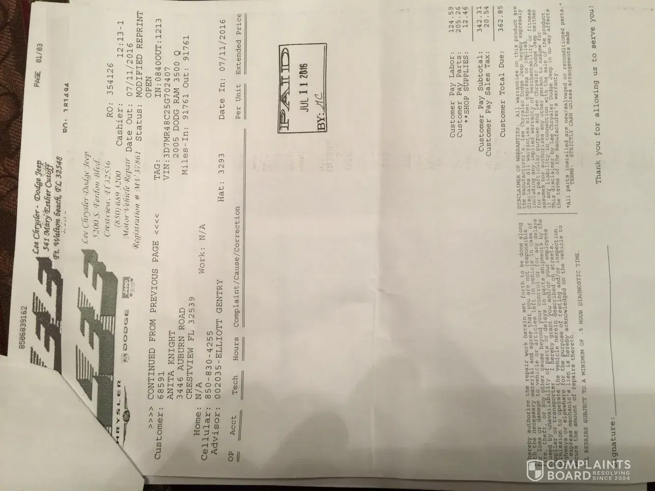 Verified customer This complaint was posted by a verified customer. Learn more