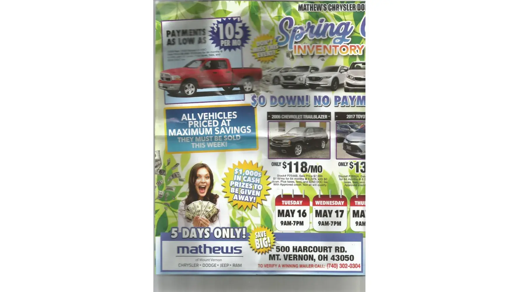 False advertisement by Mathew Chrysler of Mount Vernon, 500 Harcourt Rd. Mount Vernon, Ohio 43050 [protected]. When I arrived at the dealership I talked to a salesman named Steven and he told me I would need more money down and a cosigner when the flyer I got in mail said 0$ down.$3500.00 minimum trade in. I believe this is discrimination against lower income people and are trying to sell loans for banks with a kickback. This gives Chrysler a bad name in Knox County, Ohio. I can not recommend Mathew Chrysler to anyone for any reason.