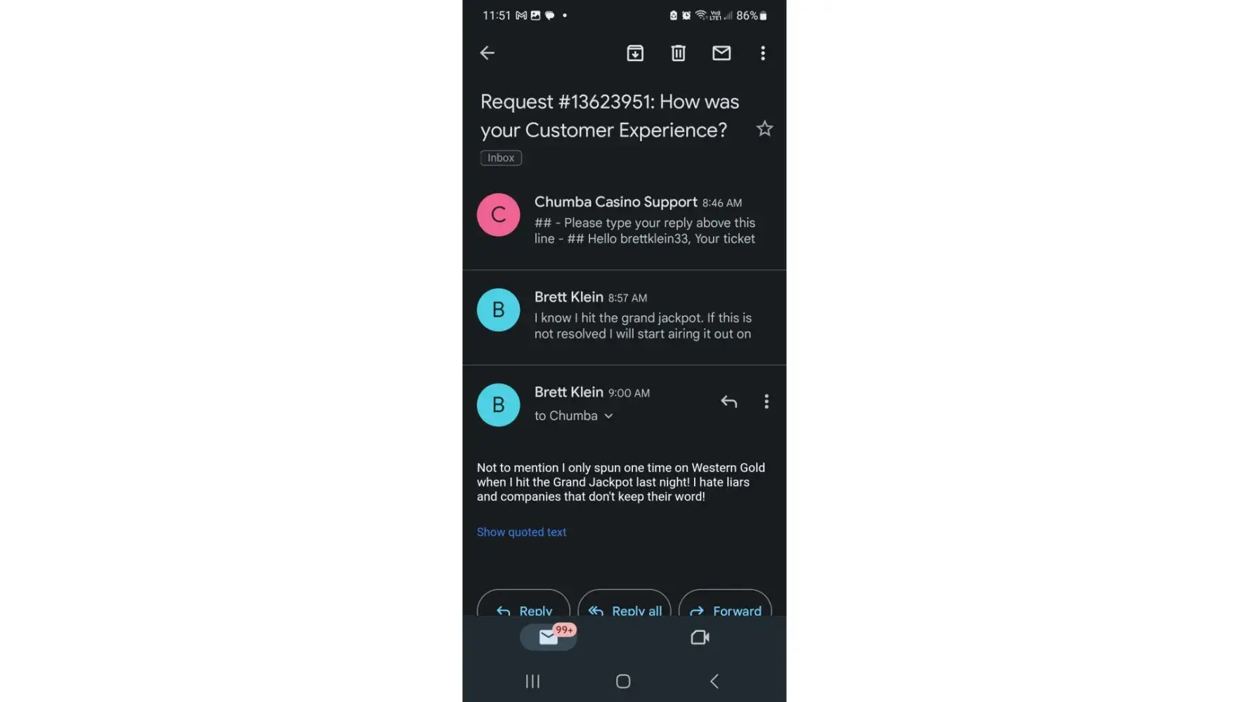 On Monday, July 24, 2023 at 04:03:46 AM CDT, Chumba Casino Support wrote: