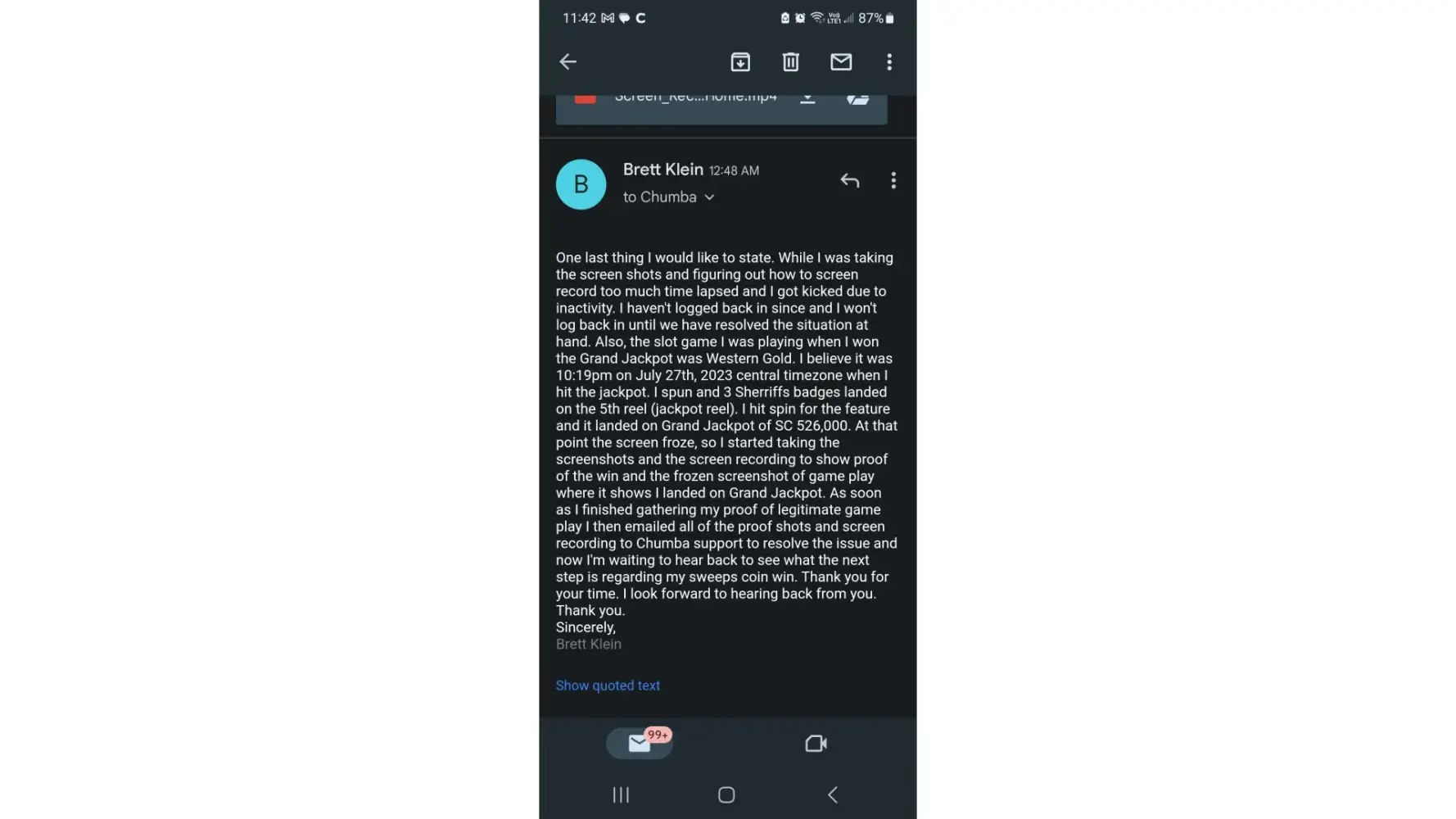[protected], that's on all their emails. Just make this right Chumba. I'll remove my negative reviews on trust pilot, Google, and the BBB. Laurence Escalante seems to be an honest man. I don't think he would never cheat or deny someone of their rightful winnings. Please just make this right.