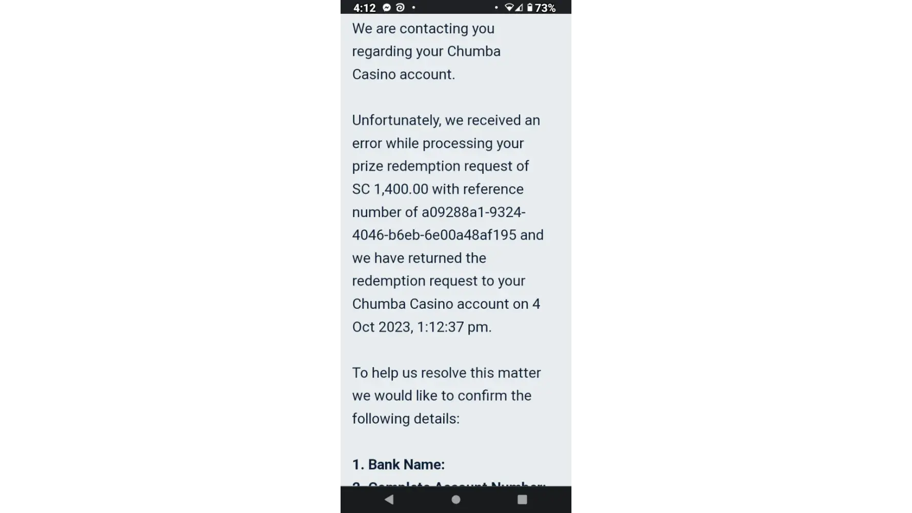 So in January of 2023 I hit a jackpot. My account has over $19,000 in it but chumba is reviewing to pay me. The complaints resolution team sends me an email every week or so to tell me they are still working on it but it's been 6 months. The number of ny chumba issue is