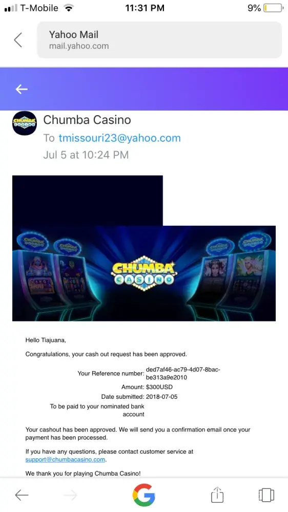 If you have any questions, please contact customer service at [protected]@chumbacasino.com.