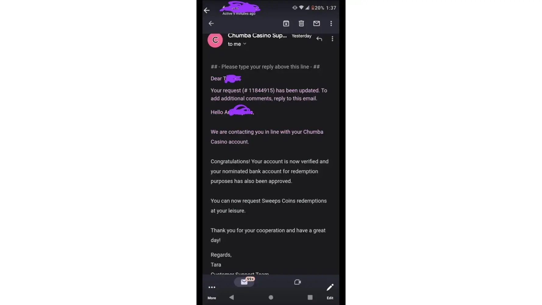 Hi I was playing chumba sometimes it'd take 45 minutes or so I finally hit 200 dollars and I placed 50 dollars in and on December 23 Rd hit 500 dollars I was so happy to win as I played everyday on free spins that way I could make sure before I pay that it was enjoyable I never recieved any payment just promotion texts they made a commitment to have my pay out 5 business days such a dishonest scammer deserves a double whammer scammers are bad I just want my earnings quickly totaling 600.00 shouldn't advertise and make promises you can't keep and a word that's no good false news and more and if I don't get my payout fast I will put you on blast and report you too fcc and BBB rating you liars and scams and thieves I feel sorry for you I really do and God don't like ugly I'd act fast to resolve this to my satisfaction chumba that's all