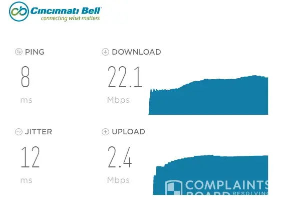 I was a victim of bait and switch by Cincinnati Bell. Claim to give you 30MBps internet. After switching from 22mbps, i now only get most 11mbps. After talking with service, they informed me there is a congested hub in the area..What? and you couldn't tell me before switch. They informed me that they would not know until hook up---fake ads