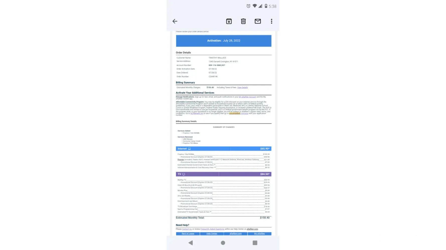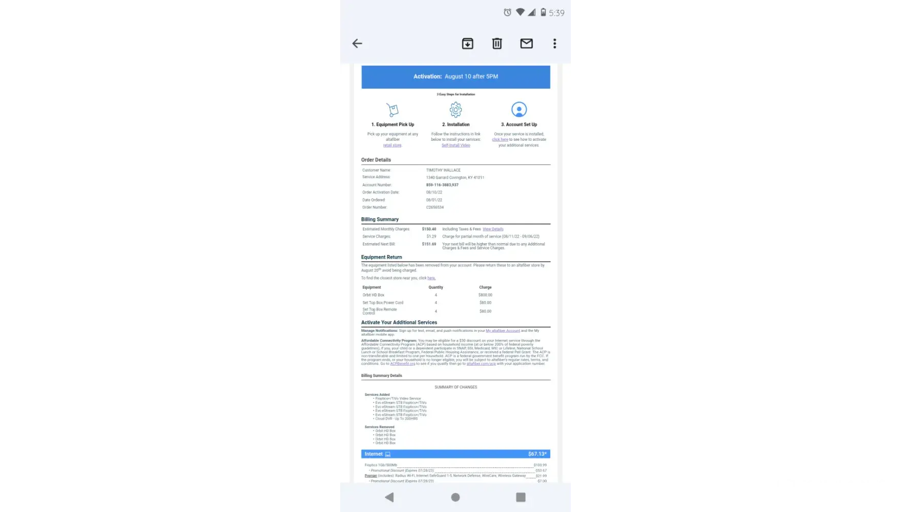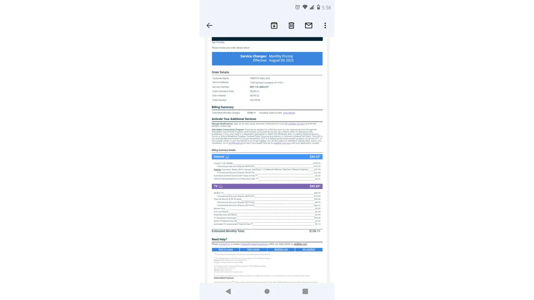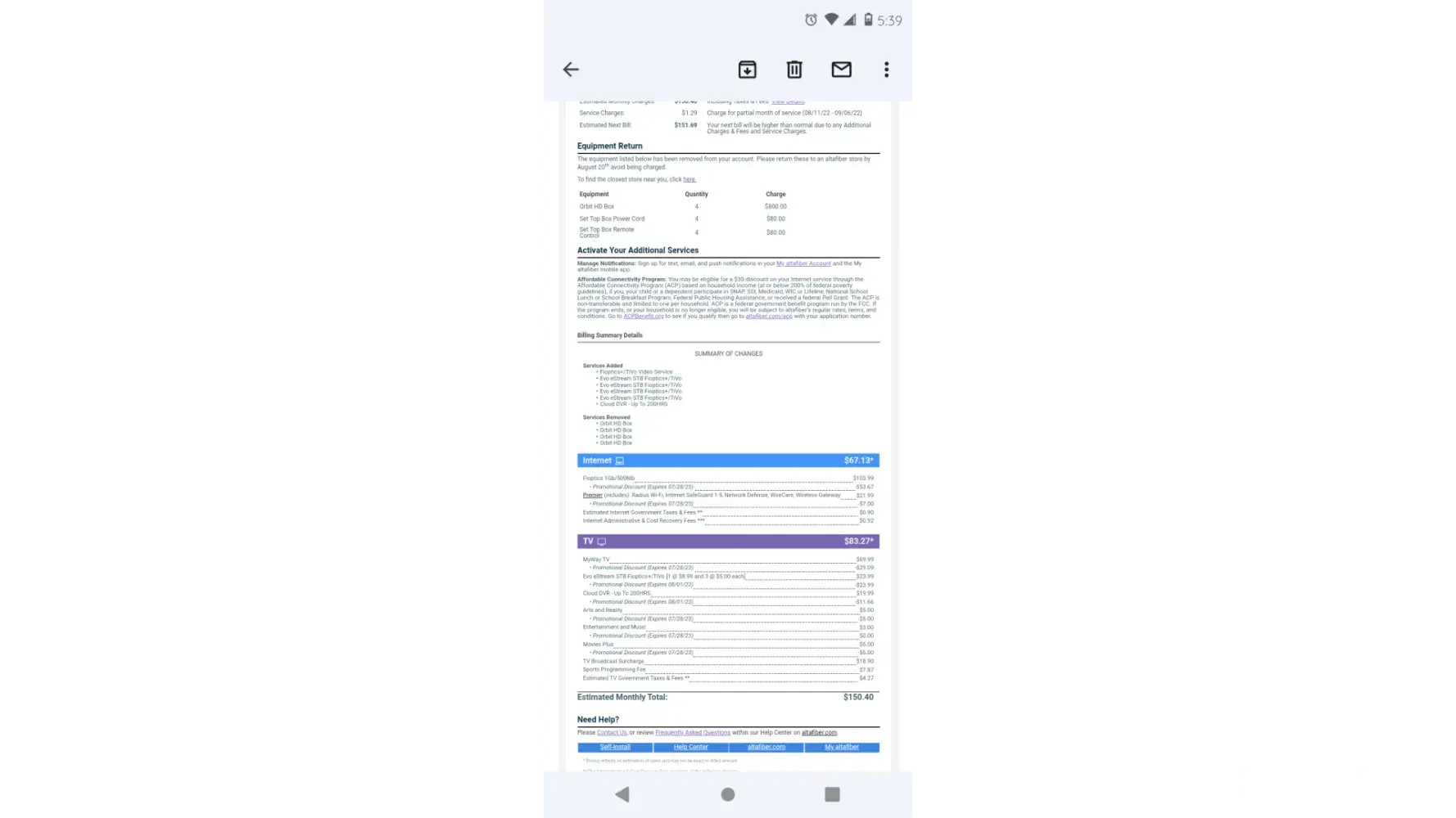 I pay 85.13 for just internet, no phone no cable, just internet. I filed a complaint to the BBB. Spectrum is charging 49.99 for everything..boycott altafiber. This complaint is too short, so allow me to continue to fill your head. The economy is falling, how can you charge someone almost 90 dollars for internet and be ok with yourself? I hope God has mercy on those involved. I hope this was enough typing for you. I hope everyone that reads this has a blessed life. 🙌 almost done, I want to make sure this gets read, because this is not right. Do I diddty diddty dumb diddty do. Well I'm at the end now. Hope that was enough fo lr you.