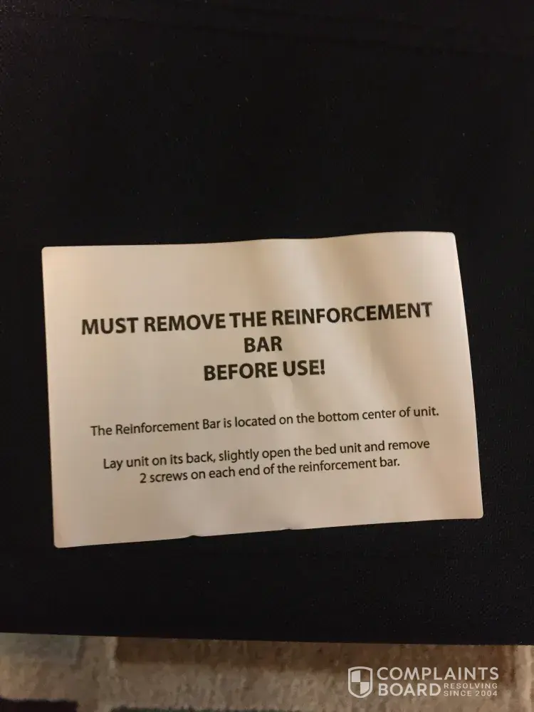 Just slept on my Cindy Crawford sleeper sofa last night for the first time. Got the more expensive one with the memory foam mattress. MOST UNCOMFORTABLE THING I HAVE EVER SLEPT ON. The issue is the same complaint other people have about the bar going across the bed in the middle of your back. It was so bad I got up, folded the bed back up and just slept on the sofa. I did see that sticker about the reinforcement bar as I folded it back up so I'm not sure removing that will even help based on all the comments. Anyways, I am going to go to RTG to see what they will do about this. Very disappointed.