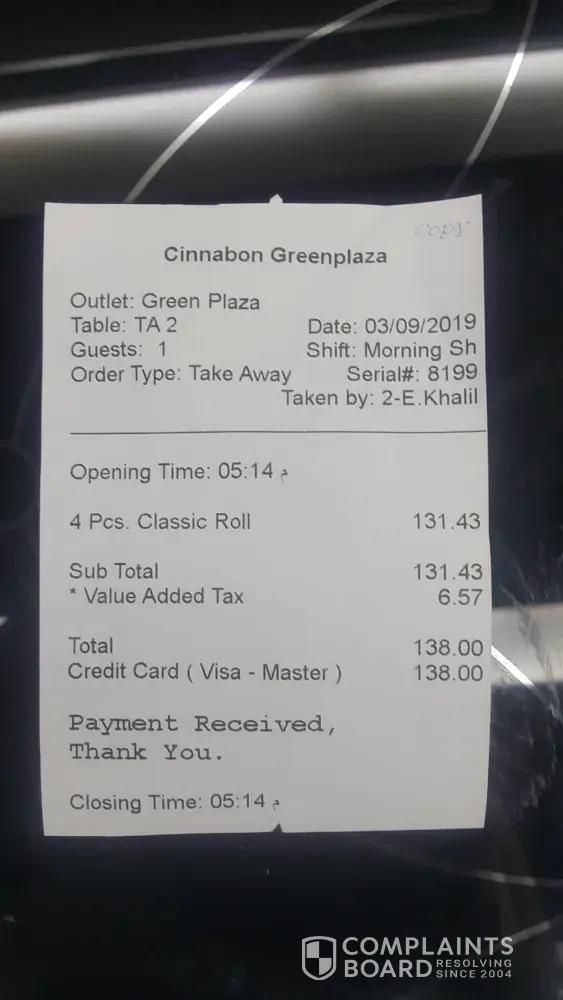 Kindly be informed that I was in cinnabon Green plaza branch Alexandria Egypt today 3th September 5:10 PM To buy classic cinnabon pack 4 pieces. The cashier try to force me to take a pre-packed one which didn't include any production date or even expire date when I refused to take it he told me that the company policy to take pre -pack not from hot plate . When I request a complaint form he told me that is not available in the branch that is the first time I didn't found a complaint form in multinational F&B company branch.