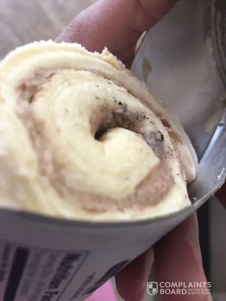 I bought two cases of cinnamon rolls from Sams and each one I opened up had black particles on each side. We always buy theses rolls so I knew it wasn't normal to have black particles in them so we threw all them away. I do have a picture of the black particles I am mentioning about. See attached. The Cinnabon rolls didn't expire for another month in a half. The boxes we purchased weren't damaged. The Sam's we purchased them from was the Sams in Columbia SC. Thank you.