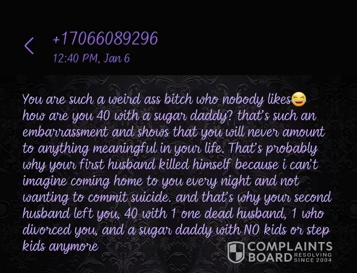 An employee that was being nosey about why I quit and about my current divorce sent me a message when she didn't get what she wanted saying my first husband killed himself to get away from me and talking about my stillborn baby boy. I won't have her distracting their memory. Since I said she was harassing me I can have her brought up on charges. I have spoken to law enforcement and Georgia State Prosecutor Carl Schluter. This isn't the first or second complaint I have filed about Candi Marshall with the store. This is the 4th complaint and the 2nd one about my son. It had also be the last.