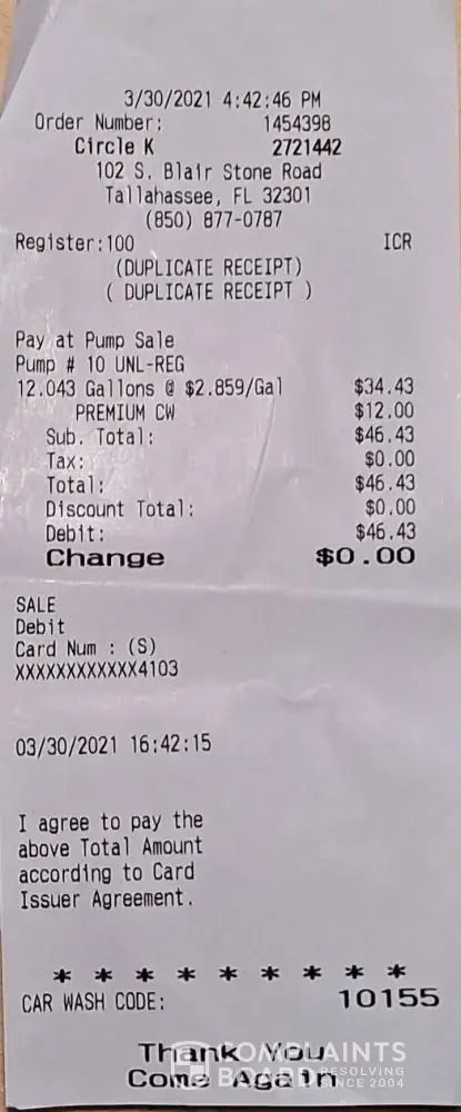 On March 30th, I stopped at the Circle K on Park Avenue & Blairstone Road in Tallahassee, FL.
