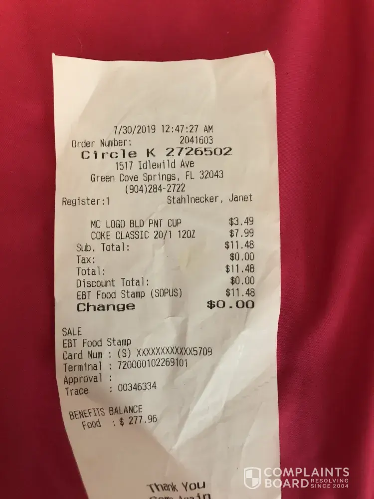 Tonight I went into the local circle k 2726502 in green cove springs Florida that I've been going to just about every day since I moved here in 1994 as a kid. Some days I go multiple times a day. It's at the end of my road and I usually have a wonderful and easy time while there. That was until tonight. I walked in and said hello to both ladies working...