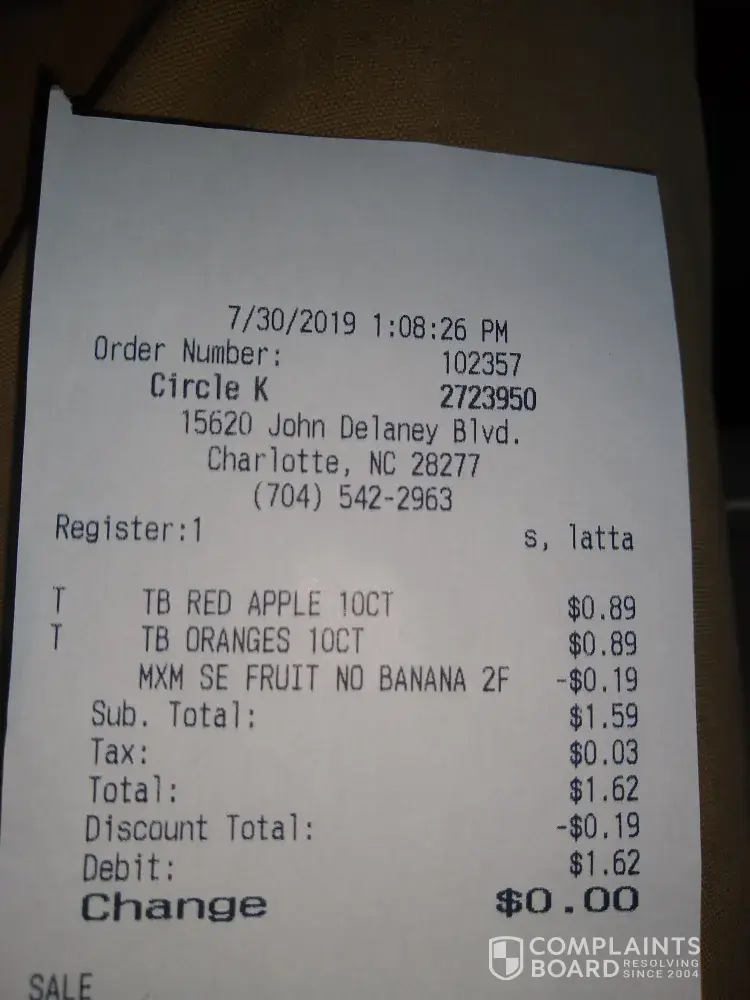 I was told that I needed to pay .99+tax for ice in my own container. Where in America is that right? Then to have (jae) an employee of Circle k to butt into the conversation that I was having with (lata) the cashier with her comments is unprofessional. You will charge me for ice but all of the landscaper that comes in and use the microwave and bathroom that...