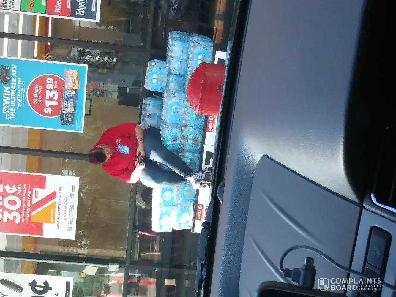 An Employee of circle k is outside smoking a cigarette playing on her phone while, sitting on cases of water I do not believe there is any reason for that. She clearly knows it's not Aloud it seems to me the workers disregard it and allow it another employee was out there with her and didn't say anything. I am a former employee of circle k so i do know outs not permitted.
