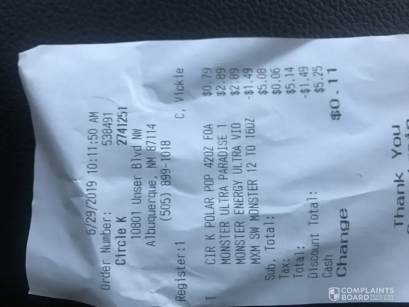 6/27/19 12:27 PM ORDER NUMBER 335599 CIRCLE K 6301 REGISTAR 1