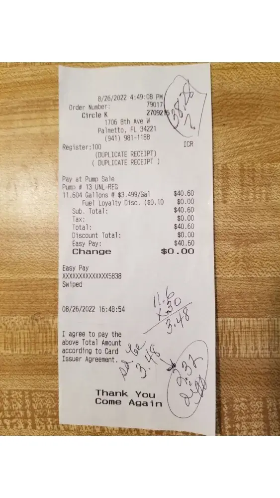 I applied and finally received approval on my easy pay gas card after providing more information than is necessary for a mortgage loan. Very frustrating. According to your literature I am supposed to receive $.30 cents off per gallon for the first 100 gallons or 60 days. I used the card on 8/26/22 and only received $.10 cents off per gallon. I just called customer service at 6:10 pm on 8/29 to determine the issue. After giving him my phone number, my email address, the last 4 if my ss#, my birthdate, the high school I attended, he informed me my birthdate is incorrect in the system and asked for my driver's license #. Folks, this is a gasoline card. I'm not trying to rip off circle K! If my account cannot be verified with my phone, my email & the last 4 if my ss# then you are requesting way, way too much information! I will probably cancel my card and will never use circle k again. You make it way to difficult to buy gas! Kaye Bracken