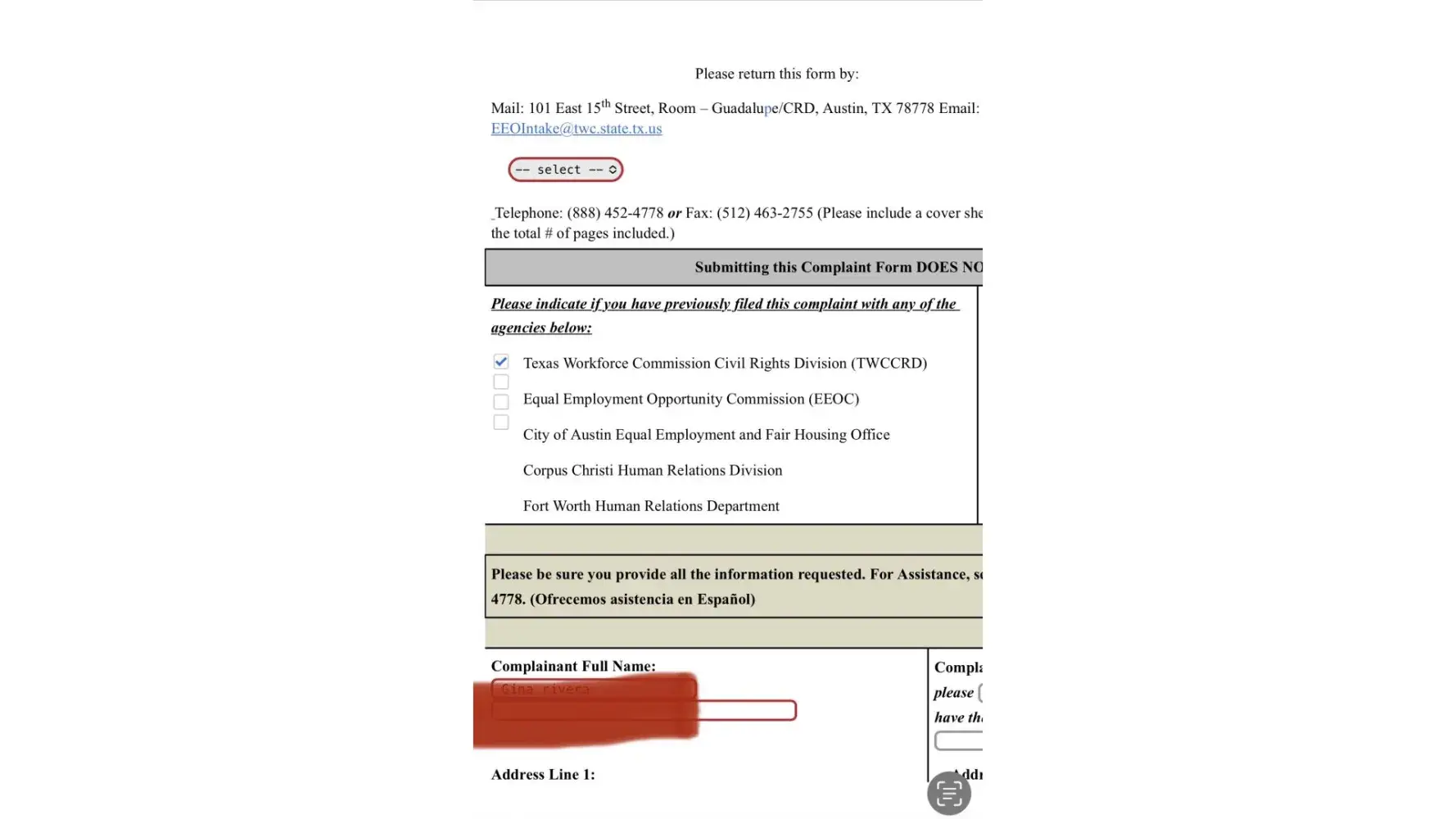 To: TWC Civil Rights Division