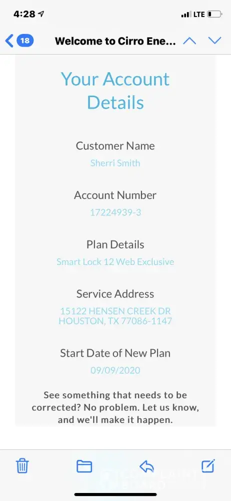 1. On or about 8/21/18, I initiated electricity request with Cirro Energy,