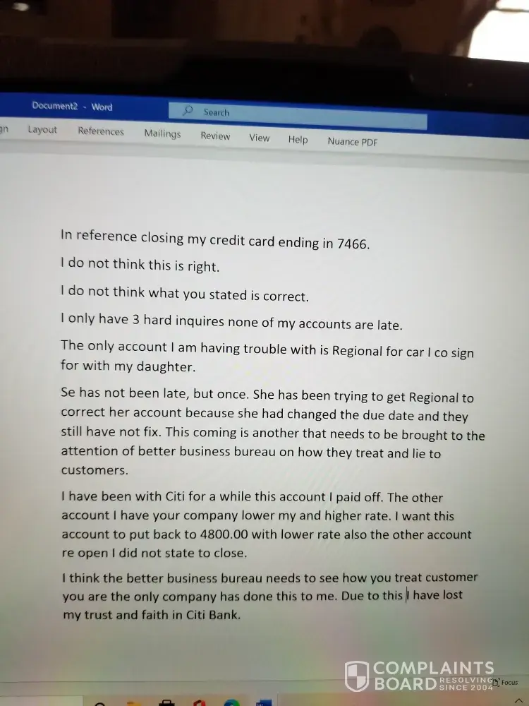 Desired outcome: Citi card reinstated