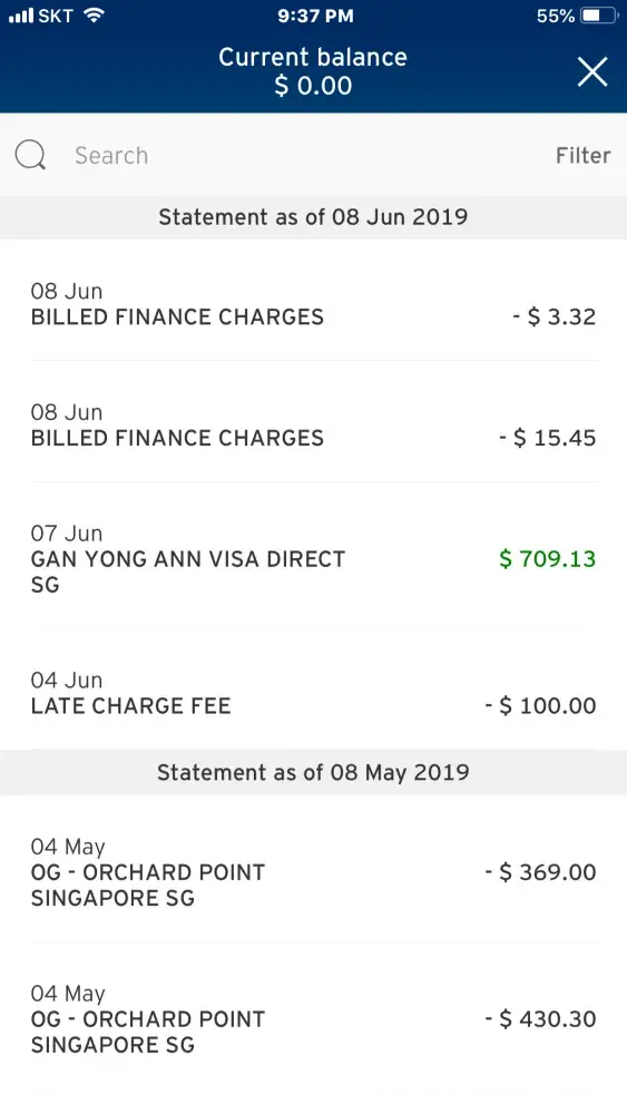 I was late for my payment for the june statement and settled soon after. For july statement, I was charged late payment fee again.in total I have been charged 2 times late charge fee of sgd100.