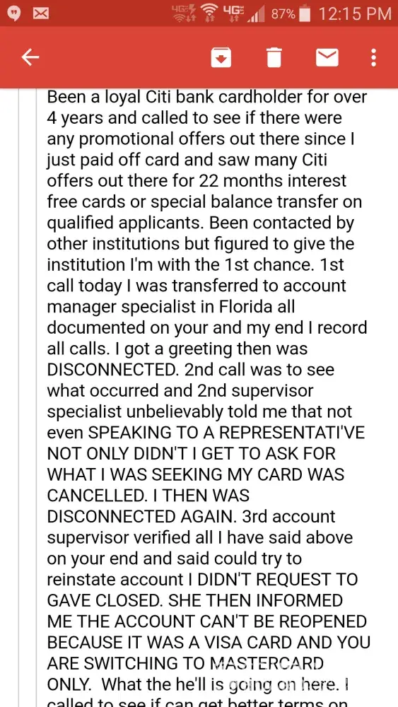I'm taking legal action against them since my acct doesn't show that so documentation from CITI is needed stating that the funds were not received!