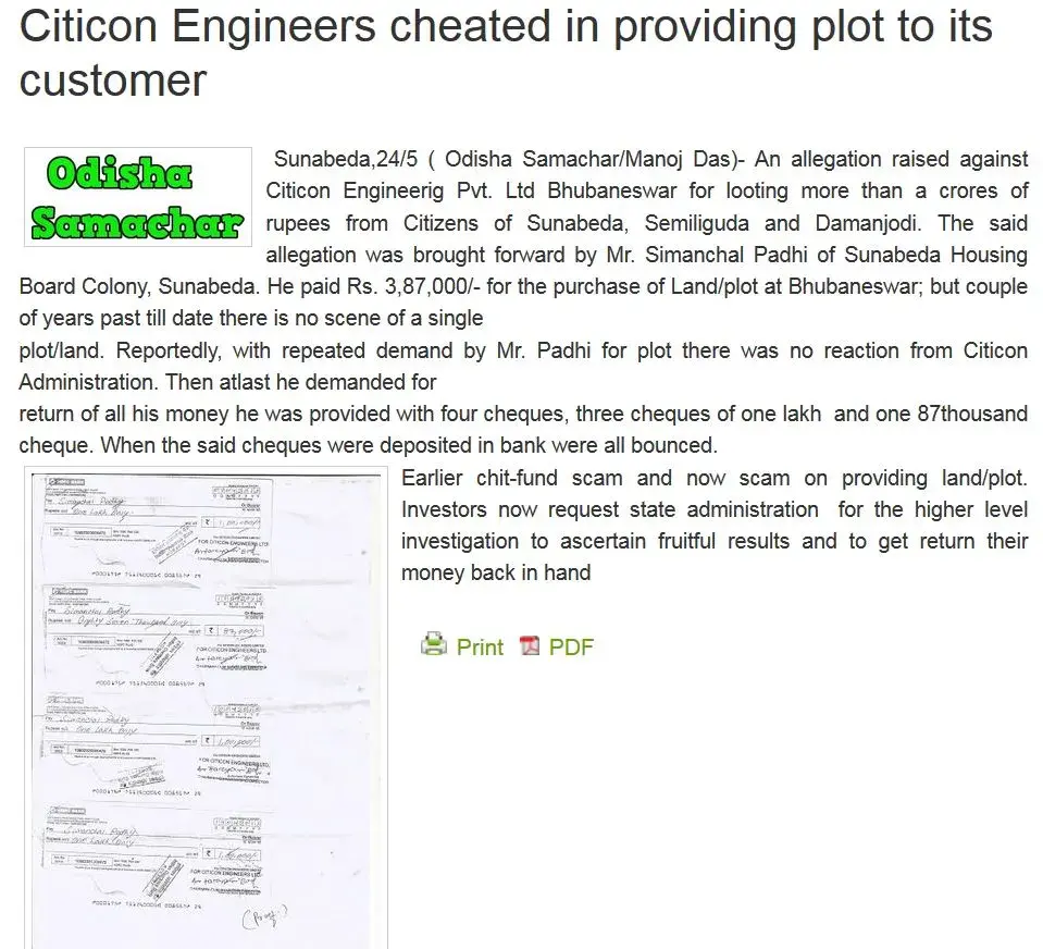 Aware of citicon engineers ltd., 540 saheed nagar bhubaneshwar orissa reputed builder used to publish advertisement in all oriya news paper+arrange stall facilities in religious & other public gathering area to catch the poor honest people. In 2004/2005 I & my family members come cross to the big stall of citicon engineers pvt. Ltd. Citicon about their...