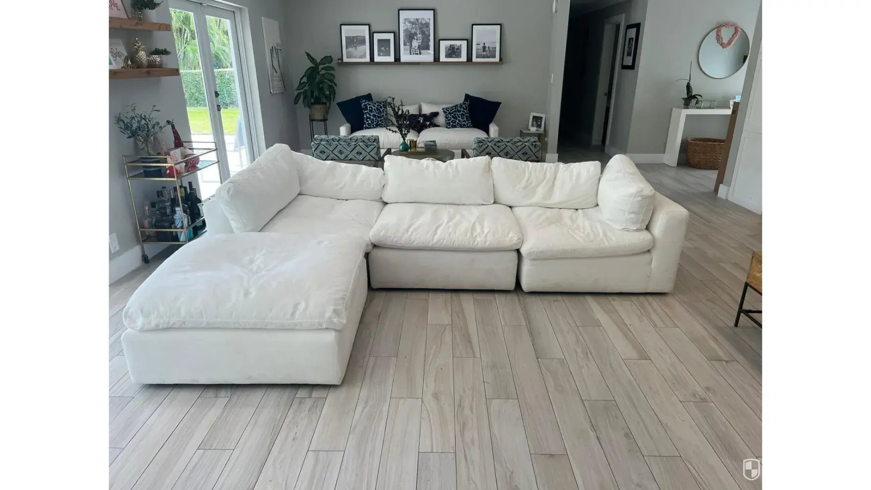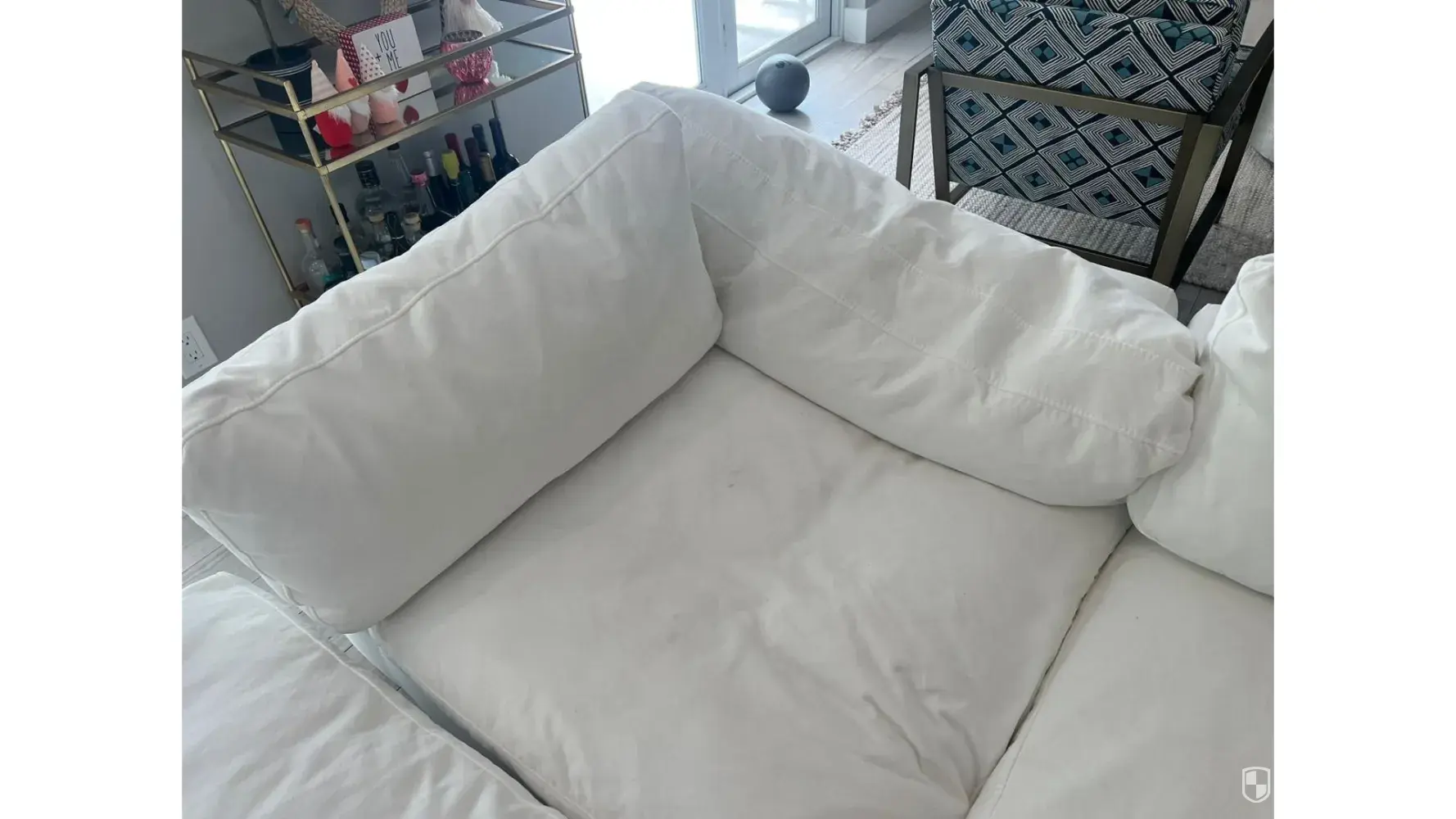 I bought this sofa three months ago and was promised by the salesman that the fabric would repel dirt and clean up easily. Reality is totally the opposite. The fabric is filthy after two months of delivery and the person they sent said it was uncleanable. Also the sofa has no structural integrity to it. You sit on it and it sinks all the way to the ground. The cushions do not hold in place and fall over the sitting area. It is a disastrous blob.