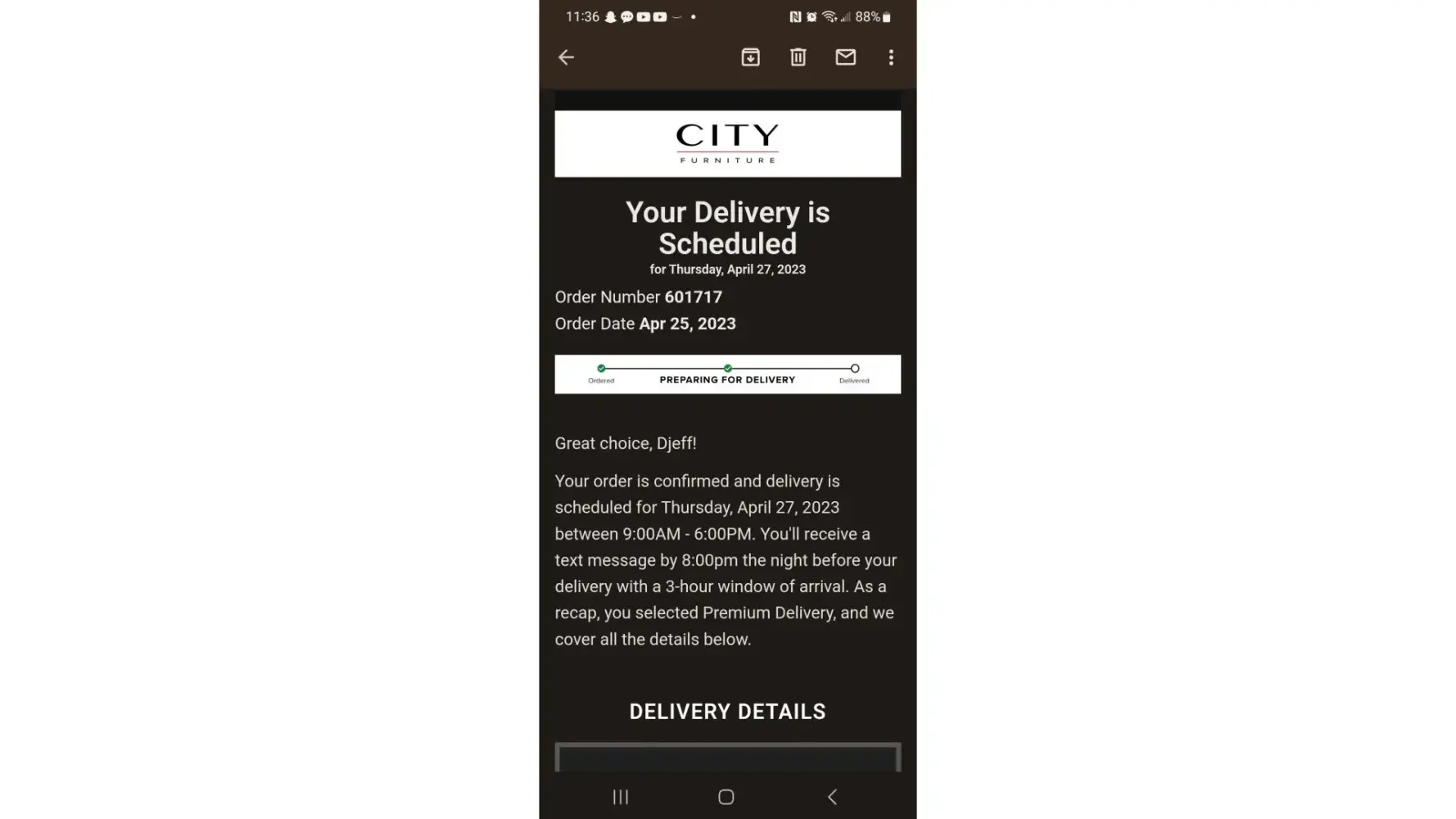 Read full complaintDelivery city furniture