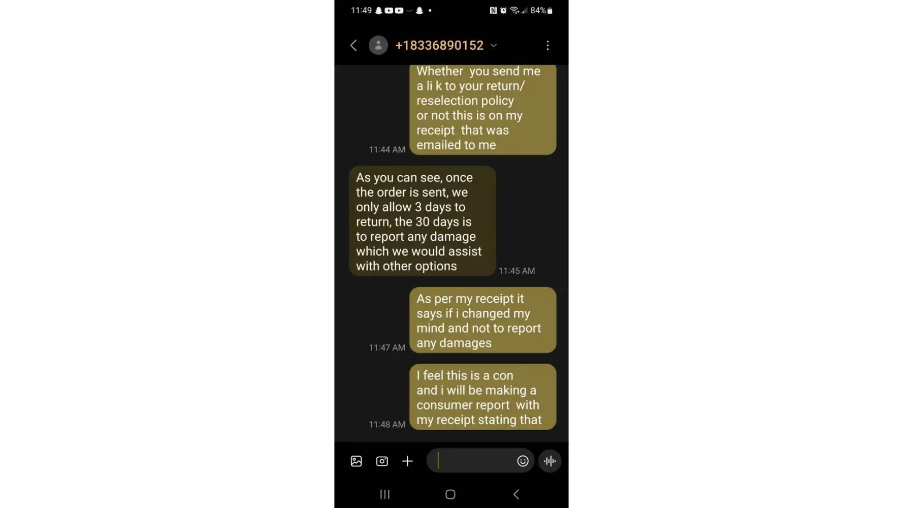 So I reached out through the text message for help and and was told by the lovely representative that their returned policy was only 3 days and when I explained to her that when I spoke with the gentleman after the setup, he said 30 days ans she responded "I do apologize about the miscommunication. Is there anything else that I can assist you with?".