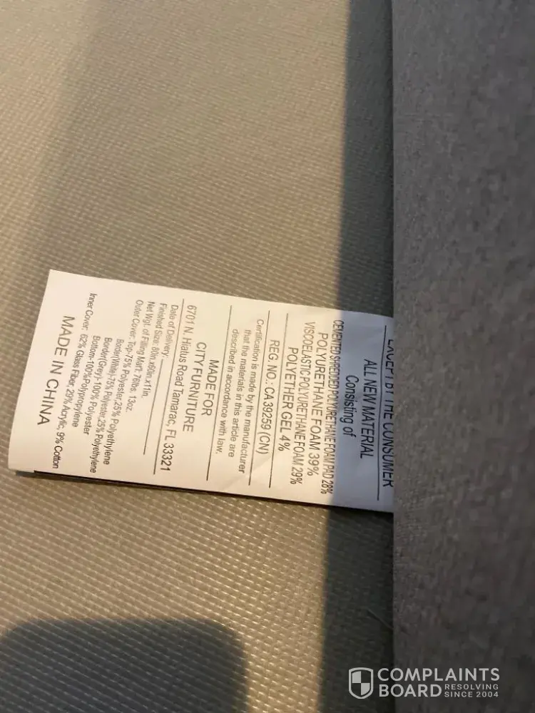 I bought a mattress from city furniture in 2014. it's only been 4 years and my mattress is completely sagging in the middle. i called city furniture to inquire about the factory warranty and every time i talk to one of the customer representatives, inlcluding their manager, they explain that i need a specific serial number listed on the tag of the mattress and without it, my mattress doesn't have warranty. the only tags that the mattress has are the ones that city furniture stapled to the mattress. even my box springs have the same city furniture tags. my mattress and the box springs have the original tags and i even have the city furniture receipt. they have all my information in their system but cannot provide the factory warranty for the mattress. i do not understand how my mattress does not have its factory warranty when i paid $1, 200.00. city furniture is the worst! after my experience with them and seeing that all the tags on the mattress and box spring are from them, i have a feeling i purchased a used mattress and not a new one.
