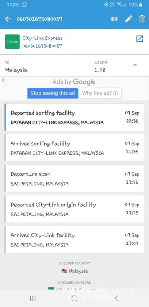 I didn't get my Parcel yet. The parcel has arrived at city link Bayan Lepas on 24th Sept and is stuck until now on 4th October. I have called so many times city link Bayan Lepas but no one pick-up my call.