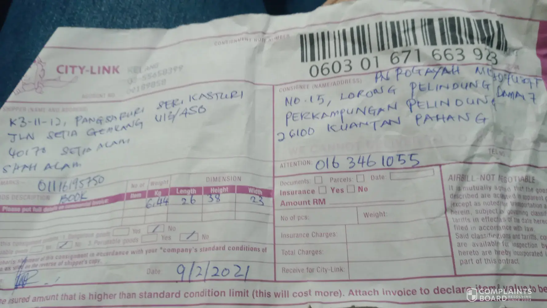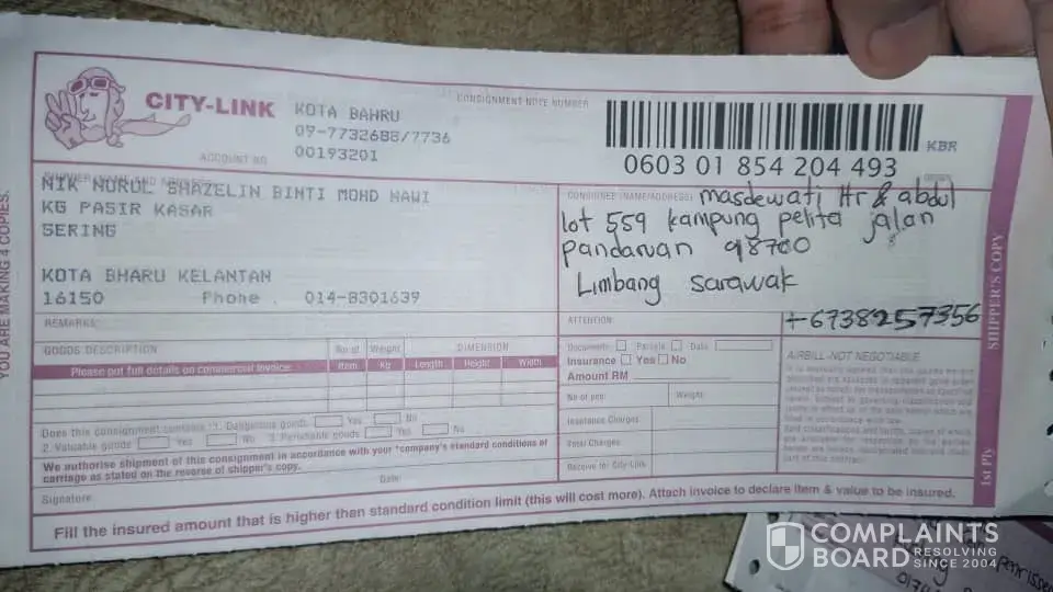 The consignment are collected from shipper place on 27 nov 2020, until 02 dec 2020 the consignee was call me (shipper) haven't receive the document yet by tension. So I help them try to contact citylink customer service centre the person in charge ms ain to handle my status and she direct to and answer me the consignment are not send to the consignee location address. What~!?