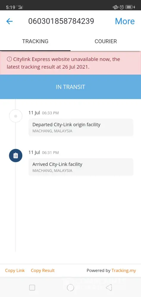 I make a shipment (1st) from Kajang, Selangor to Sungai Petani, Kedah on JUNE 28TH, 2021. I had follow-up on their tracking system from the day onward, unfortunately after 18 days the system still showing that "Transit". I make a call the customer service centre on JULY 5TH, 2021, the feed back was due to Corvid case, the warehouse in Sungai Petani was temporary close and will reopen on the next day, mean they will deliver on July 6th 2021.