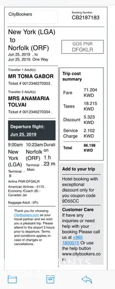 Traveler 1: Mr Toma Gabor, Ticket # [protected]