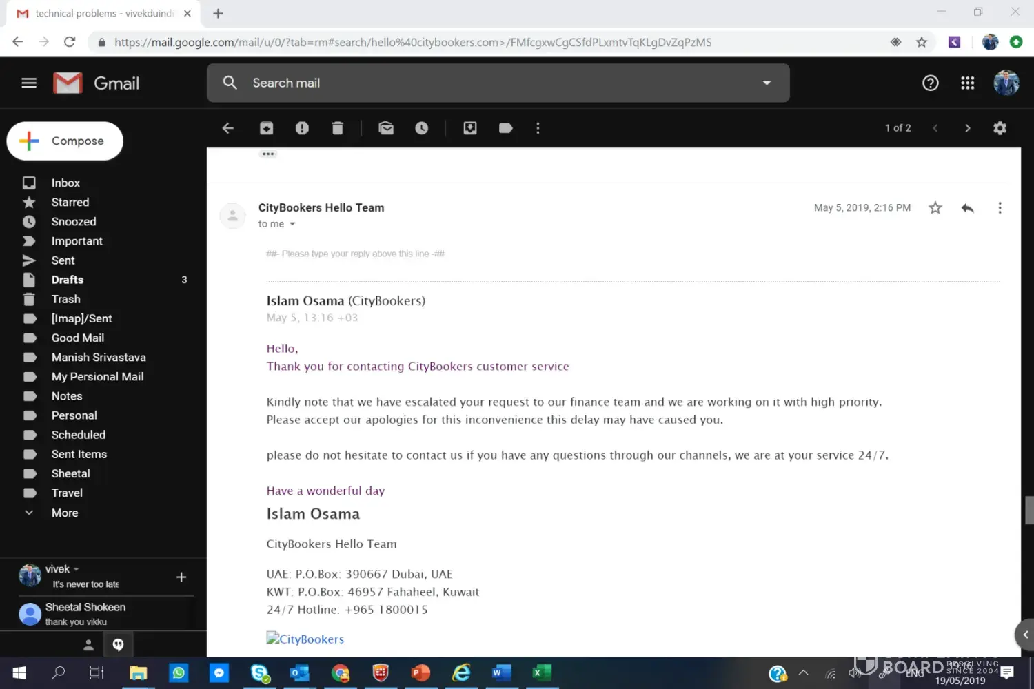 Good Morning. I am writing this serious complain against the Kuwait based travel agent called CityBookers.