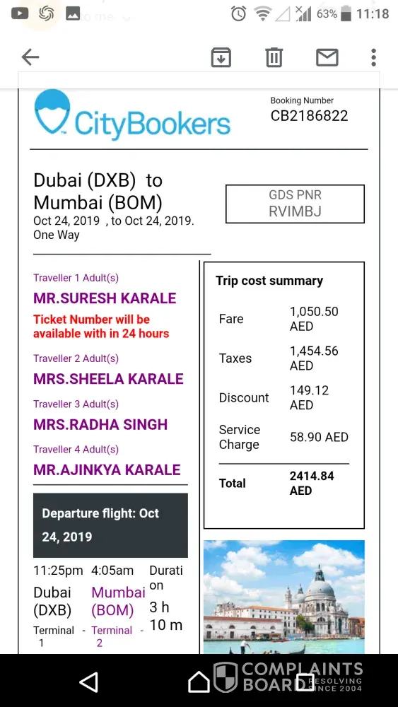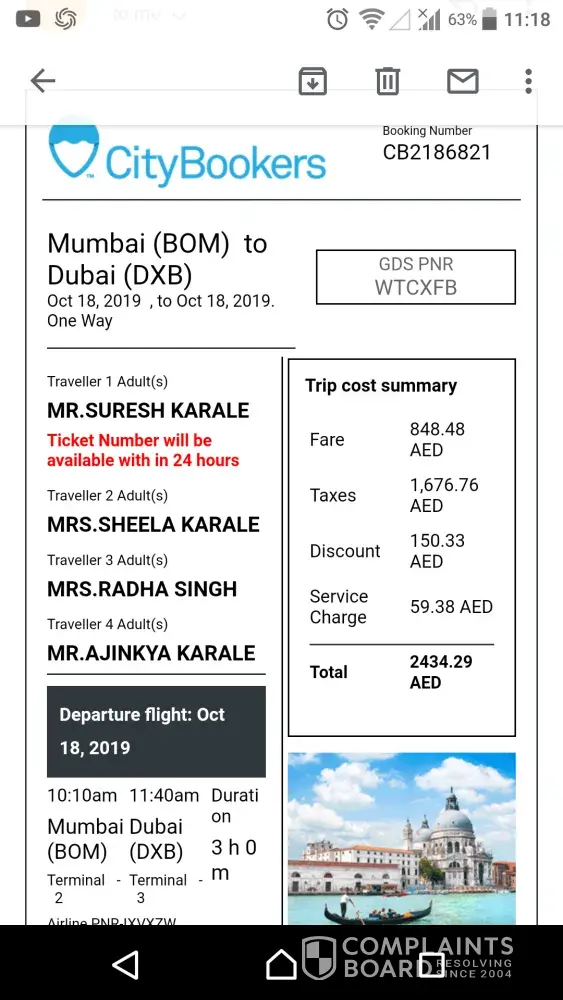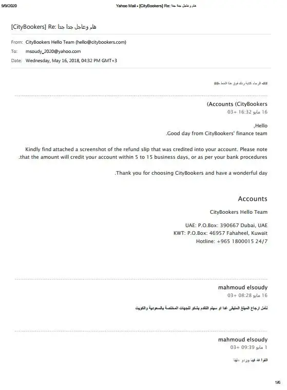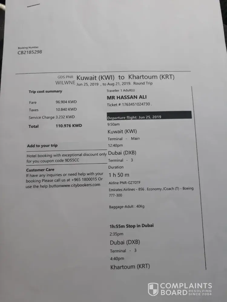 My Complaint against City Booker based Kuwait Travel Agency.
