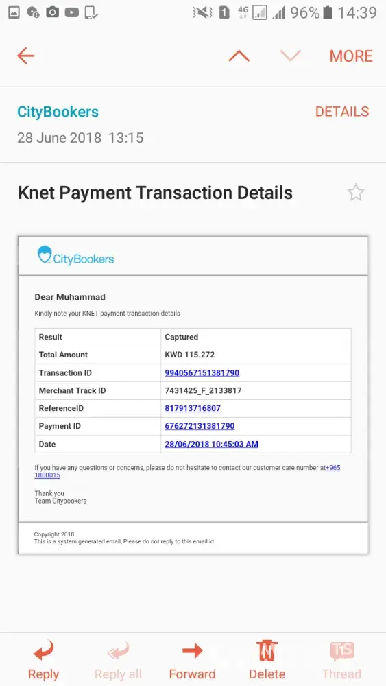 They said cancellation fees is 73kwd. But still my remaining balance is 36.583 kwd.