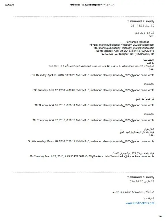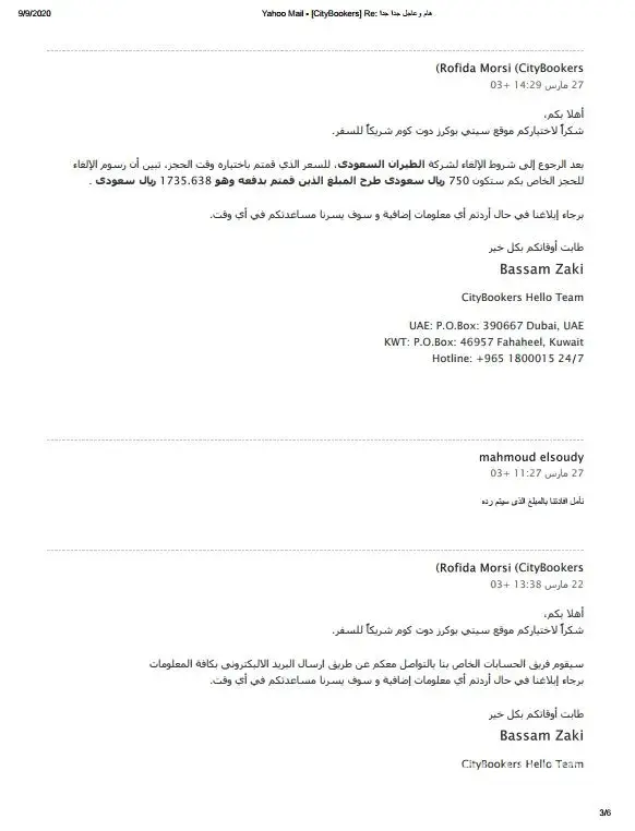 قمت ÙŠØ§Ù„ØØ¬Ø² علي موقع الشركة CityBookers عن طريق الإنترنت علي طيران الاماراتية وذهبت لتأكيد الرØÙ„Ø© وجدت ان تزكرتي تم إلغاءها علي ÙˆØ£ØµØ¨ØØª Ø§Ø¨ØØ«Ù‹ عن موقع شركة سيتي بوكرز ØØªÙŠ Ø§Ø³ØªØ±Ø¯ أموالي Ùلم اجد لها مكتب ÙÙŠ الكويت ورقم هات٠وخدمة العملاء لا تستجيبً وانا علي عجلة من امري وأريد الانتهاء من هذه الأزمة ÙÙŠ اسرع وقت اين Ø§ØØ¯ موقع الشركة ÙÙŠ الكويت وكي٠استرد أموالي التي Ø¯ÙØ¹ØªÙ‡Ø§ ثمنا التزكرة ومن المسئول عن اهدار وقتي