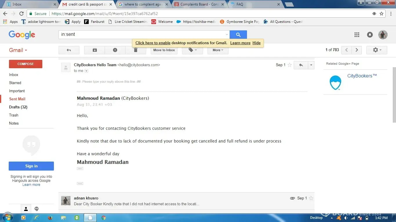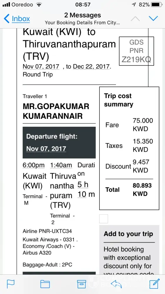 I had booked my ticket on April 23, 2019 through CityBookers with booking number CB2187586 form Kuwait to Islamabad.