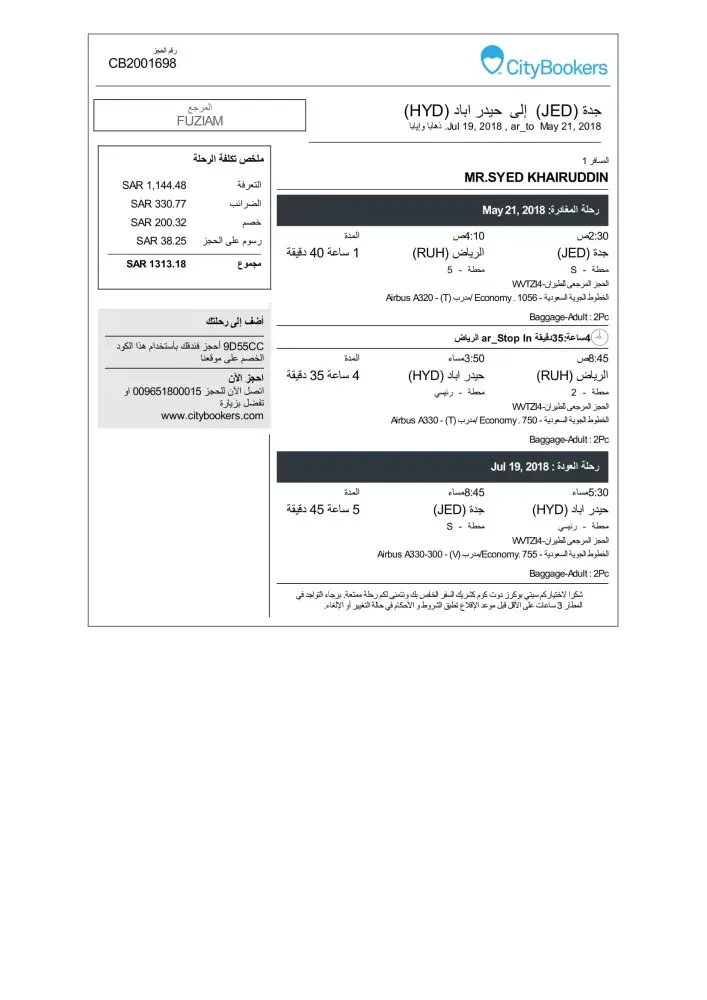I booked flights through CityBookers 2 times from cok to kwi on 14st April 2018.