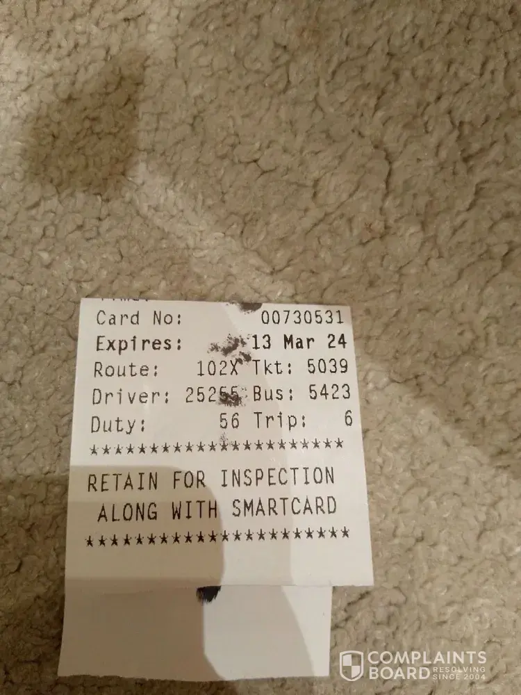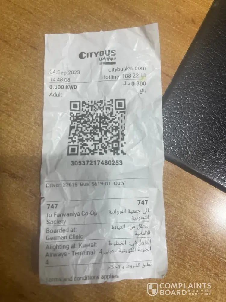 morning 9:40 agaila to mahboula i trip in the bus bus but the driver get money from me but he didnt give me the ticket
