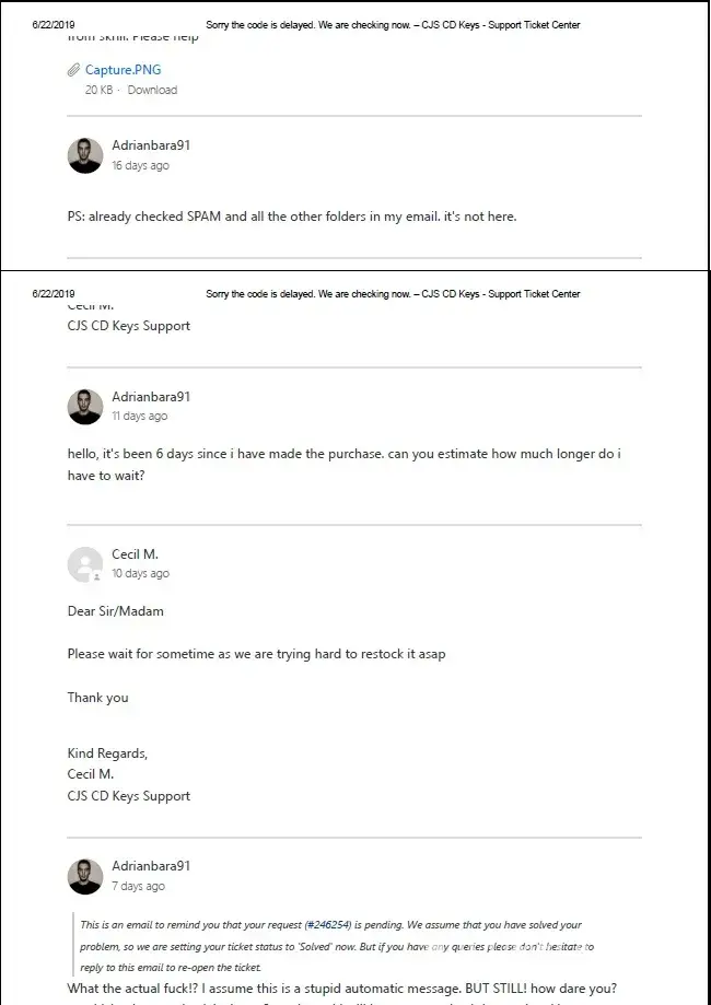 CJS CD Keys has created an elaborate scheme of no longer caring for their customers and in doing so selling them fraudulently purchased keys, and while they offer instant delivery on their goods, that is not the case. In fact, their retrieval process dubbed "Autokey" to receive your goods is very intrusive and downright shoddy in nature.